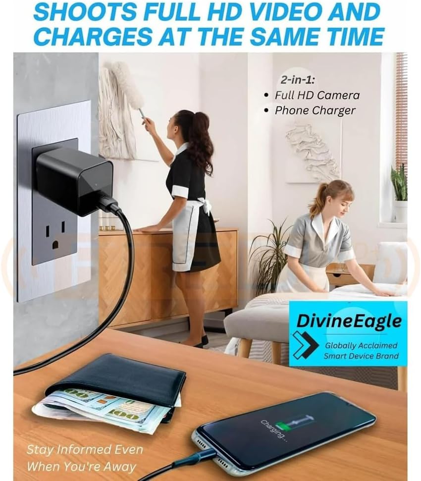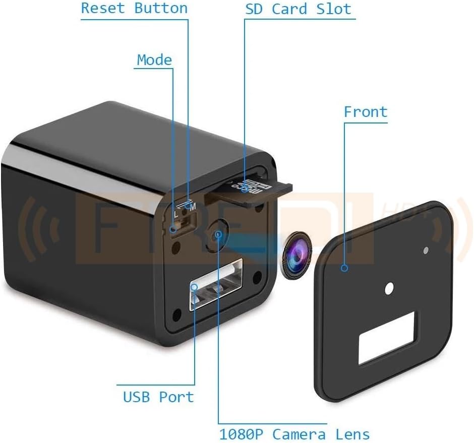 - 1080P Video Clarity: USB Charger Camera record real 1080P HD video with a 70° wide angle of view and this camera looks like a small one phone charger adapter, no one can notice that it’s a camera.