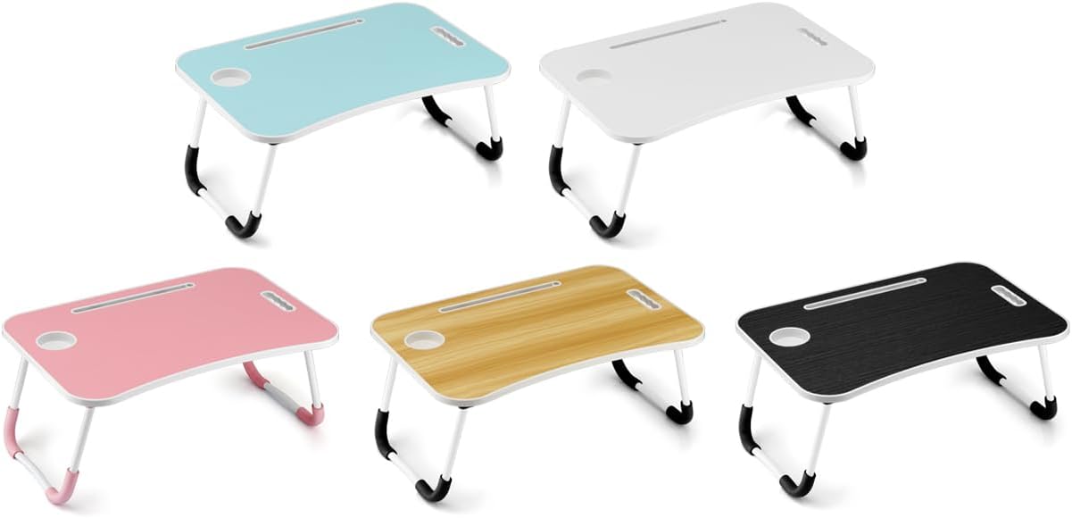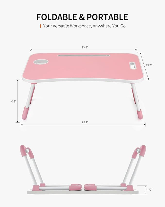 - High Quality Material – The foldable laptop table is made of medium density fiberboard (MDF) and round aluminum alloy tube frame. It has an ergonomic curved desk design that is sturdy and durable. The laptop bed stand is very light and easy to carry, allowing you to easily complete work on the bed, sofa or floor.